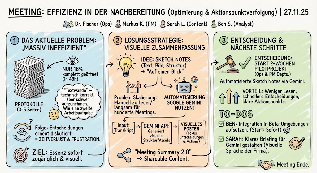 Sketch Notes aus Meeting-Transkripten in Sekunden – mit Google Gemini statt mühsamer Handarbeit.